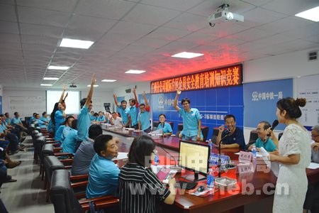 此次競賽結合全員安全教育培訓活動要求,競賽內容既有安全操作規范、安全法規類題目,又有緊密聯系施工現場安全管理、安全操作的實踐類題目,競賽由個人必答題、搶答題、集體共答題3個環節組成。參賽隊員在比賽過程中充分發揮聰明才智,個人必答題環節往往是主持人話音剛落,選手的答案便脫口而出;最為激烈的搶答題環節,未等主持人念完題目,就有選手高高舉起手臂搶著答題,前兩個環節中幾乎沒有任何一個選手出現失誤;集體共答題環節,選手抓住每題得分點詳盡敘述,表現出了較強的團隊精神和個人實力,整個競賽你追我趕,互不示弱,場面氣氛熱烈。競賽中還融入了觀眾參與搶答,調動了全體員工共同參與的熱情。經過近一個小時的激烈決逐,最終各代表隊按得分多少決出第1、2、3名,東平2號隧道分部代表隊勇奪第一名,佛肇項目部代表隊贏得第二名,東平新城車站分部排名第三。公司領導為參加競賽代表隊選手頒發了獎品和紀念品。