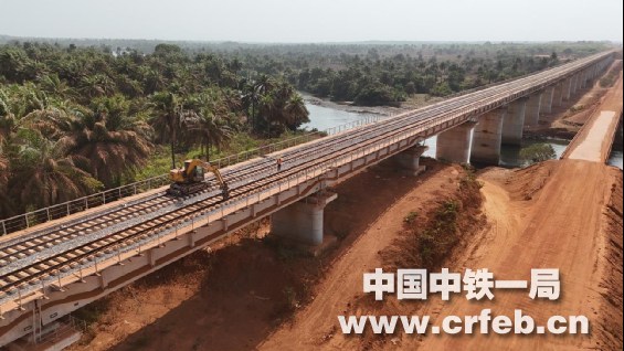 中鐵一局MXTJ-01標鋪架工程承接標段內T梁預制及架設1710孔、正線鋪軌289.14公里、站線鋪軌61.06公里的施工任務,馬瑞巴亞港至穆薩亞站區間線路全長55公里。自今年2月19日,跨幾內亞鐵路MXTJ-01標正式進入長軌鋪設階段以來,項目部克服交叉施工組織復雜、長軌運輸安全風險高、語言溝通障礙、高溫酷暑等諸多困難和挑戰,圍繞大干130天勞動競賽活動節點目標,深入開展“決勝鋪軌保開通”勞動競賽,中幾雙方攜手合作,科學規劃、高效組織,采用長鋼軌牽引車進行機械化長軌鋪設,以平均單班鋪設5.4公里的進度連續奮戰34天,順利完成馬瑞巴亞港至穆薩亞站區間長軌鋪設任務。