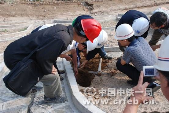 當日下午,鐵道部建設司工程處副處長杜永昌、鐵道部安全質量監督總站安全處副處長李體存、京滬鐵路公司高級工程師南學文,在西平鐵路公司副指揮長秦瑞耀、總工程師張晟,中鐵一局集團公司副總工程師、西平鐵路常務副指揮長黃釗的陪同下,對跨銀武高速馬屋80米鋼桁梁特大橋工地、南石窟寺大段路基工地進行了認真檢查。 在跨銀武高速馬屋80米鋼桁梁特大橋工地,檢查組聽取了指揮部總工程師賈清江的匯報,詳細檢查了特大橋墩身質量,跨高速公路的安全防護,隨機抽查了各種內業資料。李體存對中鐵一局西平鐵路制作的工藝流程卡、現場施工一本通很感興趣,認真翻閱。李體存對黃釗說:“這座大橋是新設計,采用了新工藝,一定要干好。” 檢查組驅車60余公里,來到南石窟寺大段成型路基現場。在國道上行進中,撲入眼簾的是線形流暢,舒展優美,骨架連環,精雕細鏤的大段高質量路基及附屬工程,在綠樹的掩映下顯得格外壯觀美麗。 在高大寬闊的路基上,鐵道部安全質量監督總站安全處副處長李體存隨意指定一處骨架護坡要求挖開破檢。三公司項目經理王金永立即按照要求,挖開了這處骨架護坡框架立柱第二層左側。李體存下到破檢處親自丈量,量出實際厚度為52厘米,超出鐵道部相關規范2厘米。進一步又量出了截水沿上沿的實際高度為11厘米,高出規范1厘米。李體存喜笑顏開,現場頓時響起一片喝彩聲。 走到南石窟寺特大橋的橋頭,看著線形優美的節段拼裝箱梁,黃釗向杜永昌介紹了中鐵一局成功研發64米移動支架造橋機,克服節段拼裝曲線跨孔的困難,全線節段拼裝施工任務已經順利完成。李體存高興地說“你們第一次干節段拼裝箱梁,干得很好,以后全部應當由你們自己來干,就是要自主創新打破技術壟斷。”
