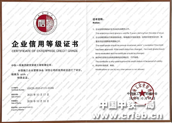 12月8日,中國施工企業管理協會“第十四屆工程建設行業誠信發展大會”在武漢召開。會上,中鐵一局建安公司榮獲“全國建筑業AAA級信用企業”、“2025年度工程建設誠信典型企業”等榮譽稱號。