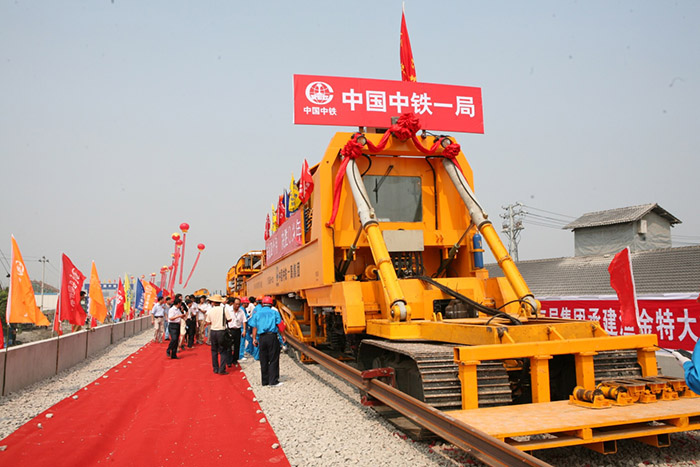 鋪軌機組采用單枕連續(xù)作業(yè)法,可以鋪設長度100~500m、軌重 ≤ 75kg/m長軌條組成的標準軌距無砟道床軌道,滿足一次鋪設無縫線路的要求。