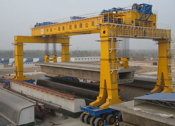 輪式提梁機(jī)適用于高速鐵路32m、24m、20m雙線900t箱梁在制梁場范圍內(nèi)的臨時移動、配合900t輪胎式運(yùn)梁車或相同類型運(yùn)梁車提梁裝車。