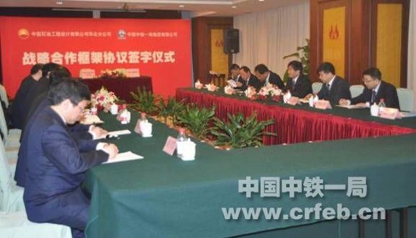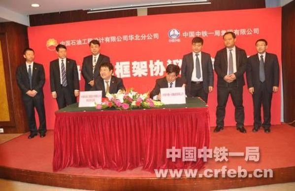 郭民龍與張振庭在會(huì)上簽訂了《中國(guó)中鐵一局集團(tuán)有限公司與中國(guó)石油工程設(shè)計(jì)有限公司華北分公司戰(zhàn)略合作框架協(xié)議》。