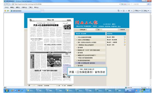 今年,是《工傷保險(xiǎn)條例》頒布10周年,根據(jù)省人社廳轉(zhuǎn)發(fā)人社部《關(guān)于開展2013年全國(guó)工傷保險(xiǎn)集中宣傳活動(dòng)的通知》精神,集團(tuán)公司按照通知要求,于4月27—5月20日集中在二公司、城市軌道公司、城市建設(shè)公司、建筑工程機(jī)械公司、上海分公司等5家單位18個(gè)施工項(xiàng)目,采取多種形式,宣傳工傷保險(xiǎn)相關(guān)政策。