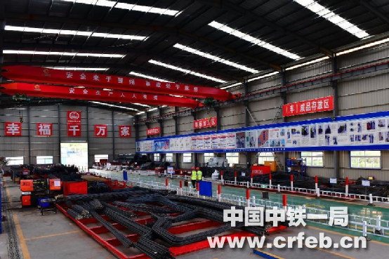 作為臨建標(biāo)準(zhǔn)化建設(shè)的重要標(biāo)志,桂鐘5、8標(biāo)段的鋼筋加工廠,廠房高度12米,作業(yè)場地平整、硬化。加工場內(nèi)醒目位置都設(shè)置工程公示牌、施工平面布置圖、安全生產(chǎn)牌、消防保衛(wèi)牌、管理人員名單及監(jiān)督電話牌、文明施工牌等明示標(biāo)志。加工廠內(nèi)按照功能設(shè)立了原材料堆放區(qū)、鋼筋下料區(qū)、加工制作區(qū)、鋼筋籠預(yù)拼接區(qū)、半成品堆放區(qū);還設(shè)置安裝了龍門數(shù)控切割機、全自動數(shù)控液壓鋼筋調(diào)直切斷機、鋼筋快速鋸床、數(shù)控鋼筋彎曲機、數(shù)控鋼筋調(diào)直機、數(shù)控鋼筋彎箍機、數(shù)字化工業(yè)焊接機器人、數(shù)控滾籠焊機、數(shù)控立式彎曲中心、全自動數(shù)控彎箍機、鋸切套絲打磨生產(chǎn)線等等機械化、數(shù)字化設(shè)備并懸掛著機械操作安全規(guī)定公示牌和設(shè)備標(biāo)示牌。這些工裝工藝標(biāo)準(zhǔn)化為項目部標(biāo)準(zhǔn)化建設(shè)賦能。