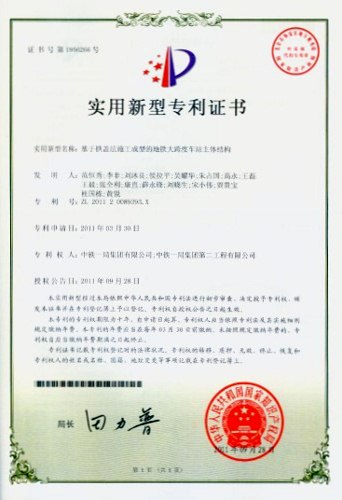 基于拱蓋法施工成型的地鐵大跨度車站主體結(jié)構(gòu)”獲得國家知識產(chǎn)權(quán)局實用新型專利授權(quán)。