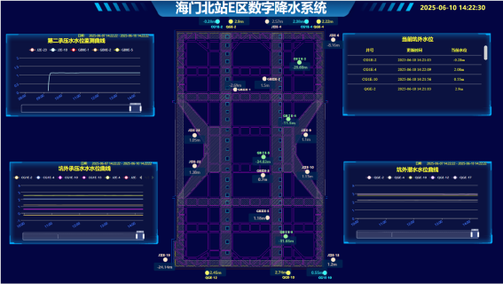 基坑智慧化降水系統(tǒng)實現(xiàn)降水技術的信息化、自動化和智能化?;娱_挖提前研判基坑變形數(shù)據(jù),支撐設計采用伺服補償,實現(xiàn)支撐整體結(jié)構(gòu)受力分布均勻,動態(tài)分區(qū)進行開挖,做到及早形成新的支撐受力結(jié)構(gòu),實現(xiàn)支撐軸力的實時監(jiān)測及調(diào)控;自動化沉降位移監(jiān)測系統(tǒng)讓監(jiān)測數(shù)據(jù)更高效、精準、快速。