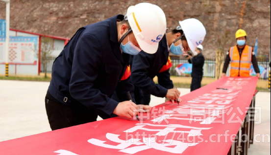 3月14日,公司黔江制梁場(chǎng)“防疫沖在前 復(fù)工勇爭先”高揚(yáng)黨旗主題活動(dòng)暨“大干180天 堅(jiān)決完成施工任務(wù)目標(biāo)”勞動(dòng)競(jìng)賽儀式在梁場(chǎng)1號(hào)臺(tái)位處正式啟動(dòng),成都大西南鐵路監(jiān)理公司涪秀二線項(xiàng)目監(jiān)理站總監(jiān)楊恩、中鐵一局涪秀二線項(xiàng)目經(jīng)理部負(fù)責(zé)人仇志龍及黨工委書記趙建光出席本次儀式。