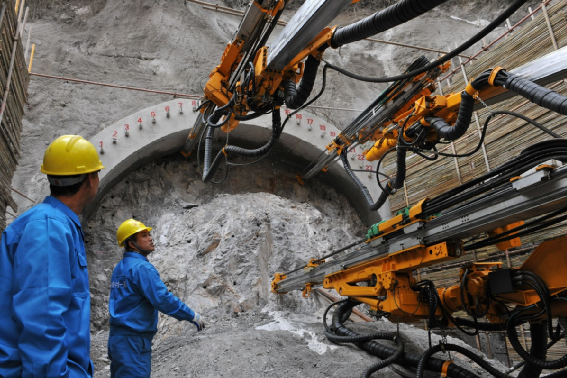 鄭渝高鐵神農(nóng)架段全電腦三臂鑿巖機(jī)在三號(hào)橫洞開鉆鑿巖