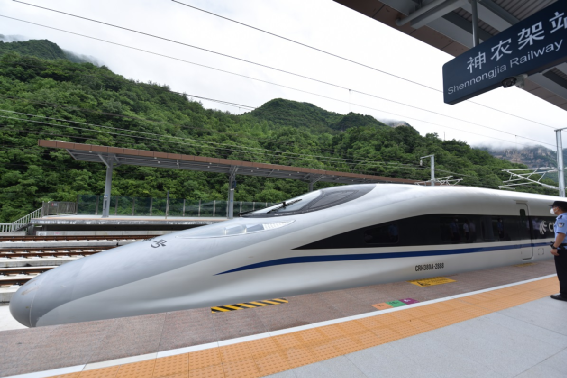 鄭渝高鐵全線開通儀式后,停靠在神農(nóng)架站的第一輛和諧號(hào)動(dòng)車