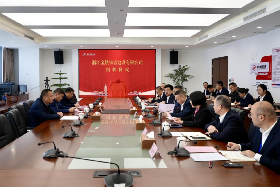 金華市國資委宣讀公司成立批復文件;出席活動的領導共同揭牌,紅綢緩緩落下,“浙江金軌鐵壹建設有限公司”的牌匾赫然在目,現(xiàn)場響起了熱烈的掌聲。