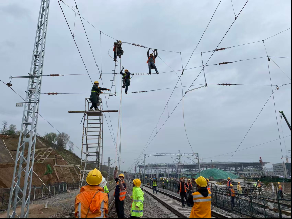 下午2點(diǎn),西安東站普速場(chǎng),隨著對(duì)講機(jī)下達(dá)180分鐘天窗封鎖命令,90名接觸網(wǎng)工人有序進(jìn)入護(hù)欄網(wǎng)內(nèi)。“為保證普速場(chǎng)開(kāi)通節(jié)點(diǎn),順利將既有西康便線從南北兩側(cè)撥接至新建普速場(chǎng)線路,我們調(diào)配資源、優(yōu)化方案,從其他項(xiàng)目選配接觸網(wǎng)上部熟練工,全力保障施工節(jié)點(diǎn)。”接觸網(wǎng)專業(yè)生產(chǎn)副經(jīng)理張利斌介紹。