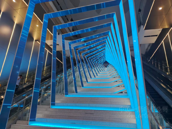 歷經(jīng)28天連續(xù)攻堅,在項目領(lǐng)導(dǎo)的坐鎮(zhèn)統(tǒng)籌與全體人員的共同努力下,“環(huán)影光鏈”景觀樓梯順利完工,為業(yè)主交出了一份滿意的答卷,獲得業(yè)主單位一致好評。如今,這座景觀樓梯在白云機場T3站廳層驚艷亮相:當旅客踏上臺階,流光隨腳步緩緩蔓延,螺旋造型與動態(tài)光影交織出震撼的視覺體驗——既實現(xiàn)了軌道交通與機場樞紐的高效銜接,更成為白云機場的標志性景觀。