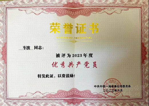 2023年,車波榮獲了電務公司“優(yōu)秀共產(chǎn)黨員”稱號,他說,我要爭做一名“忠誠、干凈、擔當”的一局電務人,一名深耕一線、無愧于公司的實干家。