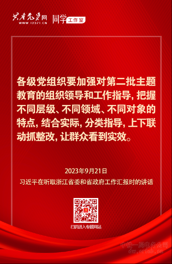 2023年9月21日,習(xí)近平總書記在聽取浙江省委和省政府工作匯報(bào)時(shí)指出,各級(jí)黨組織要加強(qiáng)對(duì)第二批主題教育的組織領(lǐng)導(dǎo)和工作指導(dǎo),把握不同層級(jí)、不同領(lǐng)域、不同對(duì)象的特點(diǎn),結(jié)合實(shí)際,分類指導(dǎo),上下聯(lián)動(dòng)抓整改,讓群眾看到實(shí)效?!军c(diǎn)擊學(xué)習(xí)】