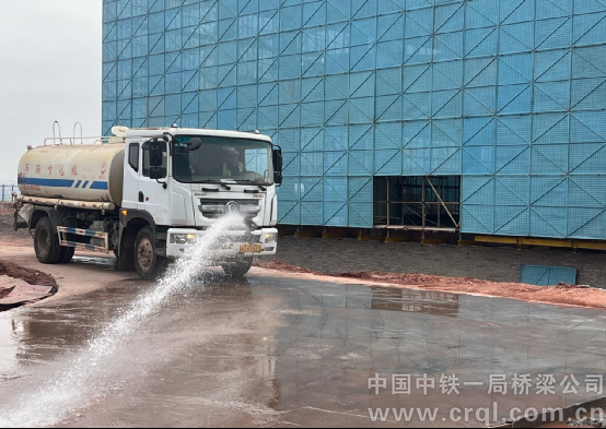 藍天下施工,要安全,還要文明。項目部嚴格執(zhí)行揚塵污染防治管控要求,在現場配備4臺霧炮機、一臺灑水車,及時進行水霧除塵和地面沖洗;施工圍擋四周設有噴淋設施,每隔1小時便自動噴灑20分鐘;加工和拆除木模板產生的鋸末碎木,也都嚴格按照固體廢棄物處理程序處理。2024年,項目部榮獲重慶市“第三批揚塵控制示范工地”。