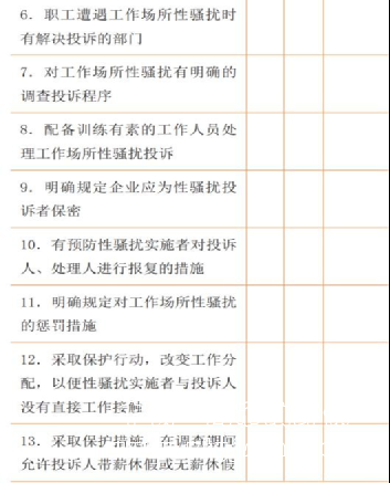 用人單位應制定保障措施,確保與性騷擾投訴有關(guān)人員(包括投 訴人和任何第三者)不受報復和傷害。