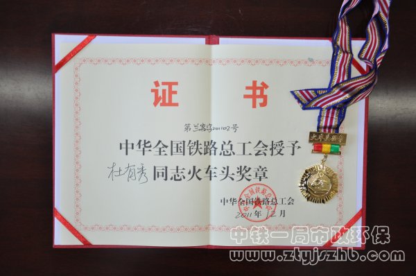 受過(guò)何種獎(jiǎng)勵(lì)稱號(hào):2007 年榮獲中鐵一局集團(tuán)公司先進(jìn)個(gè)人、2010年榮獲中鐵一局集團(tuán)市政環(huán)保公司十大標(biāo)兵、2011年榮獲中華全國(guó)鐵路總工會(huì)火車頭獎(jiǎng)?wù)隆?013年榮獲中鐵一局集團(tuán)市政環(huán)保公司十大標(biāo)兵及蘭州鐵路局中川鐵路公司優(yōu)秀項(xiàng)目經(jīng)理、2014年12月榮獲打造全國(guó)一流高鐵示范站優(yōu)秀項(xiàng)目經(jīng)理