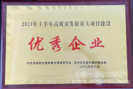 8月11日,經(jīng)過對涼州城區(qū)污水處理廠項(xiàng)目現(xiàn)場觀摩及綜合評選,并根據(jù)該項(xiàng)目在推進(jìn)鄉(xiāng)村振興、改善生態(tài)環(huán)境等方面的突出貢獻(xiàn),由公司承建的涼州城區(qū)污水處理廠項(xiàng)目代表中鐵一局榮獲“2023年上半年高質(zhì)量發(fā)展重大項(xiàng)目建設(shè)優(yōu)秀企業(yè)”榮譽(yù)稱號(hào)。