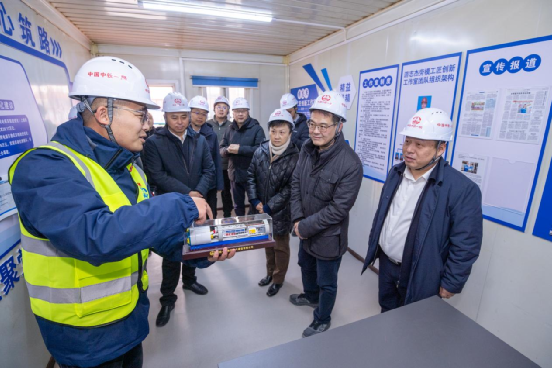 慰問儀式上,慰問組為一線建設(shè)者送上了羽絨服、米、面、油等慰問品。慰問后,楊君毅、張奉超共同為“游志杰勞模工匠創(chuàng)新工作室”揭牌,并現(xiàn)場參觀了該班組的工作與學(xué)習(xí)環(huán)境。