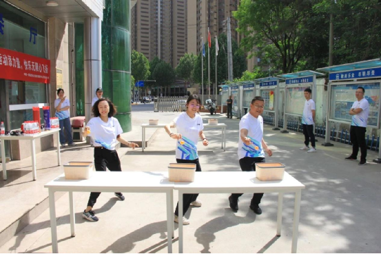 “翻杯子競技” 游戲則將團隊協作展現得淋漓盡致。職工們被2組,每組5 人。小組成員依次接力翻轉杯子,大家緊密配合,爭分奪秒。現場氣氛緊張而熱烈,最終用時最短的小組贏得了勝利,這個游戲不僅考驗了團隊的默契,更讓職工們深刻體會到了團結的力量。