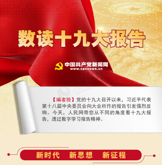 [編者按]黨的十九大召開以來,習近平代表第十八屆中央委員會向大會所作的報告引發強烈反響。今天,人民網帶您從不同的角度看十九大報告,透過數字學習報告精神。