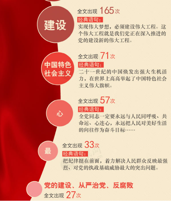 偉大75次,中華民族43條,復興32次,強國20次,中國夢13次,人類命運共同體6次。