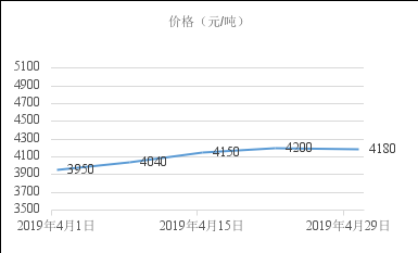 2019年4月份,國內鋼價整體拉漲,累計漲幅逾200元/噸,下半月漲勢逐步收窄。下圖為西安地區螺紋鋼HRB400EФ20mm價格走勢。