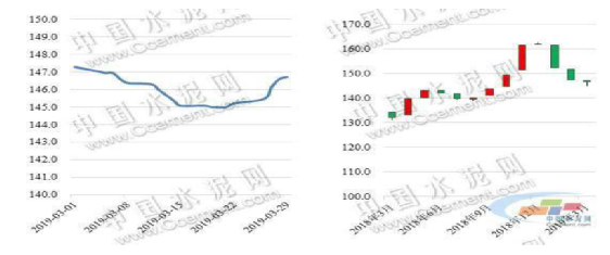圖1:3月全國水泥價(jià)格指數(shù)CEMPI 圖2:水泥價(jià)格指數(shù)(CEMPI)K線圖